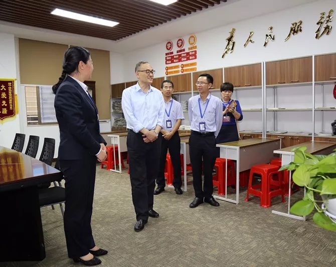 江副主席一行在黨員活動室了解翔泰基層工會和黨建工作