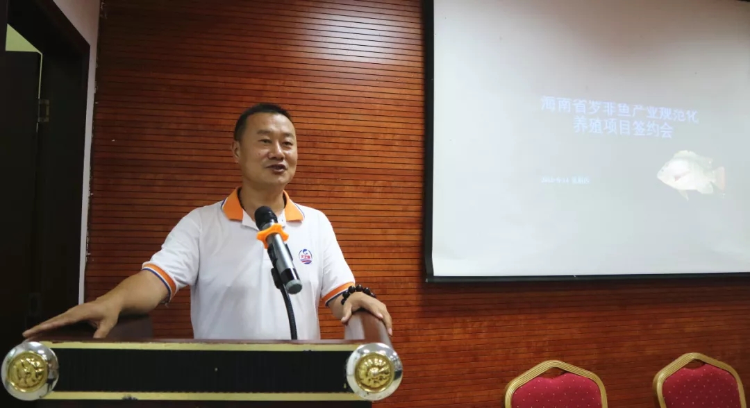 會議開始,促進會秘書長韓雪峰先生做了簽約會致辭。首先,為項目各參與方秉著為海南羅非魚品牌建設與行業(yè)未來發(fā)展共同愿景點贊。本項目力爭聯(lián)合和團結行業(yè)各方力量,齊心協(xié)力打破產(chǎn)業(yè)價值瓶頸,筑造精品羅非魚價值分層,為海南優(yōu)質(zhì)羅非魚產(chǎn)品在市場上有更好溢價做好背書,真正實現(xiàn)對行業(yè)實力的提升。海南翔泰漁業(yè)股份有限公司作為行業(yè)的龍頭企業(yè),勇于承擔行業(yè)責任,引領行業(yè)發(fā)展,對此次項目給予了大力支持。同時,也感謝寶路、天之漁、富豪苗場、齊飛水產(chǎn)、魚大大、以及我們的養(yǎng)殖戶代表,對我們項目的支持和參與。