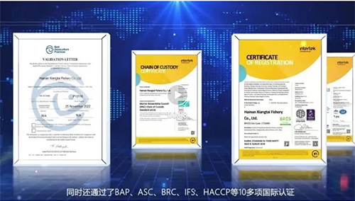 依托于全產(chǎn)業(yè)鏈優(yōu)勢(shì),我們建立了完善的追溯體系,實(shí)現(xiàn)產(chǎn)品從源頭到餐桌的全程可追溯。公司產(chǎn)品先后通過了無公害產(chǎn)品產(chǎn)地認(rèn)證,以及BAP、ASC、BRC、IFS、HACCP等10多項(xiàng)國(guó)際認(rèn)證。此外,翔泰羅非魚還獲得了海南鯛認(rèn)證以及“海南羅非魚”農(nóng)產(chǎn)品地理標(biāo)識(shí)授權(quán)書。