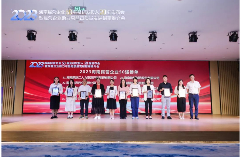 (圖為:“2023海南民營(yíng)企業(yè)50強(qiáng)”證書(shū)頒發(fā)現(xiàn)場(chǎng))