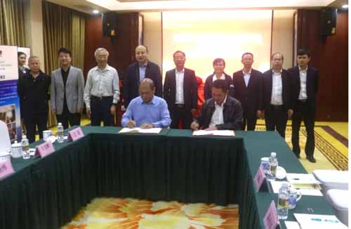 圖為:海南翔泰漁業(yè)股份有限公司董事長(zhǎng)劉榮杰與北京農(nóng)產(chǎn)品流通協(xié)會(huì)秘書長(zhǎng)陳亞中簽訂《北京農(nóng)產(chǎn)品供應(yīng)基地合作協(xié)議》
