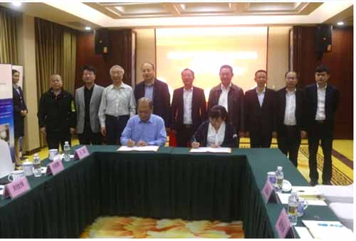 圖為:澄邁縣農(nóng)業(yè)農(nóng)村局黨組書記、局長(zhǎng)王姑與北京農(nóng)產(chǎn)品流通協(xié)會(huì)秘書長(zhǎng)陳亞中簽訂《北京農(nóng)產(chǎn)品供應(yīng)基地合作協(xié)議》