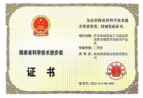 2024年9月24日,海南省科學(xué)技術(shù)廳成功舉辦了海南省科技大會(huì)暨科學(xué)技術(shù)獎(jiǎng)勵(lì)大會(huì),海南翔泰漁業(yè)股份有限公司與海南大學(xué)、賀州學(xué)院等單位共同完成的《羅非魚綠色加工與高品質(zhì)保鮮關(guān)鍵技術(shù)創(chuàng)新及產(chǎn)業(yè)化》項(xiàng)目,榮獲2023年度海南省科技進(jìn)步獎(jiǎng)二等獎(jiǎng)。