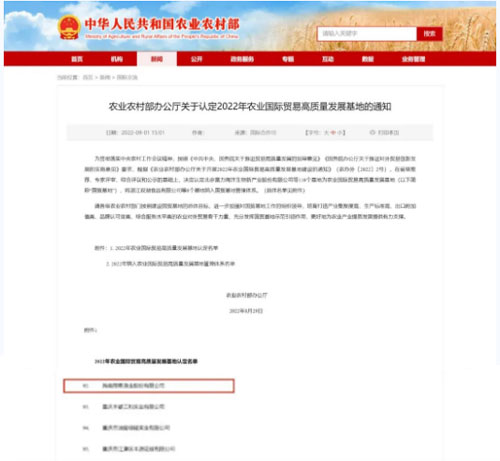 此前,農(nóng)業(yè)農(nóng)村部正式發(fā)布了《關(guān)于認(rèn)定2022年農(nóng)業(yè)國(guó)際貿(mào)易高質(zhì)量發(fā)展基地的通知》,海南翔泰漁業(yè)股份有限公司憑借其全產(chǎn)業(yè)鏈優(yōu)勢(shì)和完善的追溯體系,對(duì)現(xiàn)代農(nóng)業(yè)的轉(zhuǎn)型升級(jí)做出了貢獻(xiàn),被認(rèn)定為2022年度農(nóng)業(yè)國(guó)際貿(mào)易高質(zhì)量發(fā)展基地。