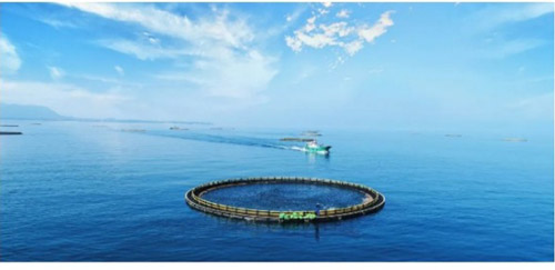 (↑↑圖為海南翔泰漁業(yè)深海金鯧魚養(yǎng)殖基地↑↑)