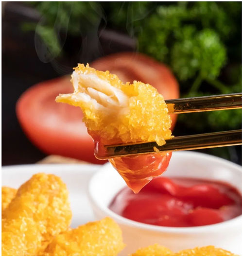 用料考究才能成就美味!為確保產(chǎn)品品質(zhì),翔泰椒麻小酥魚采用活魚加工,人工去骨去刺,選取腰肉厚實(shí)部分切條,添加花椒等香料,裹上薄薄一層面粉漿,高溫預(yù)炸定型,并迅速急凍鎖鮮,最大限度保留了食物原有的味道和口感。