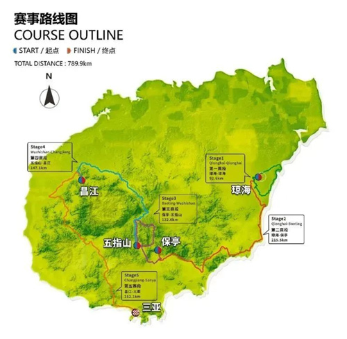 本次賽事共設(shè)瓊海-瓊海,瓊海-保亭,保亭-五指山,五指山-昌江,昌江-三亞五個(gè)賽段,全程共781.1公里,總獎(jiǎng)金30萬美元,總計(jì)有20支高水平職業(yè)車隊(duì)參賽、140位選手共同展開速度與激情的較量。